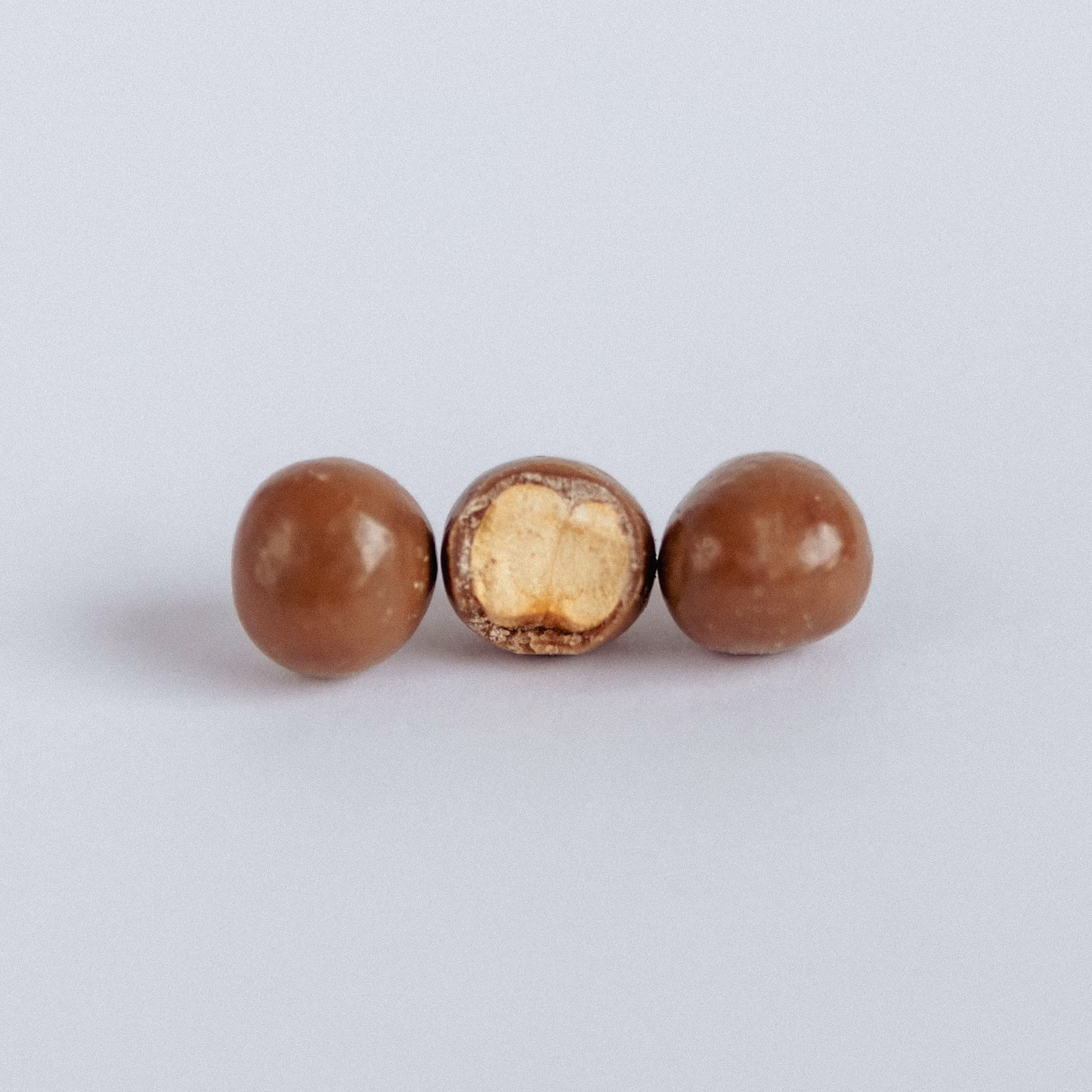 Dubbelrostade kikärtor täckta av högkvalitativ mjölkchoklad, vilket ger den krispiga kikärtan en mild och söt chokladsmak.